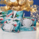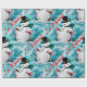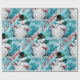 Este papel de envoltura presenta un bonito diseño retro de snowman vintage con un sereno fondo turquesa nevado. La estética general es encantadora y recuerda a las imágenes de vacaciones clásicas. El fondo turquesa crea una sensación de asombro invernal, evocando la tranquilidad de un paisaje nevado.