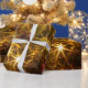 Navidades glamorosos envolviendo papel con Navidades rojos y dorados baubles, luces brillantes, oropel y ramas de árboles de Navidad (baldosas sin costura)
