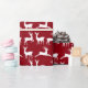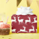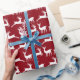Navidades rojos de reno envueltos de papel y regalo de vacaciones con renos con cuernos cruzando el diseño. Un gran diseño de papel de embalaje para las vacaciones navideñas.