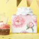 Hermoso envoltorio de regalo sobre un fondo blanco con una variedad de Peonies rosados. Adecuado para envolver de regalo de boda o ducha.