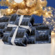 Regalo Papel envuelto estrella y hombre de navidad