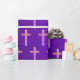 Nuestro Relieve metalizado Púrpura Navidades crucifijo de oro envuelto en papel muestra crucifijos dorados impresos en un fondo morado parecido a un Relieve metalizado.