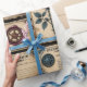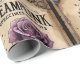 Este rústico papel de envoltura combina rosas de ciruela con motivos de vintage para una exclusiva vibra de vapor victoriana.