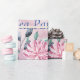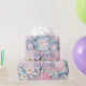 El diseño es el Fiesta de té de la abuela, es un diseño floral azul y rosa con un marco floral sobre un fondo rosa con un centro de pintura de agua rosa. Luego está su tetera azul y dos tazas de café, una es suya y la otra es para su nieta especial que comparte su día especial.