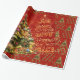 JOY, LOVE & PEACE - elegante Papel envuelto de Feliz Navidad y Feliz Año Nuevo con hermoso árbol de Navidad verde decorado con adornos coloridos y luces brillantes sobre el fondo rojo.