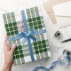 Papel de regalo de Navidad Año Nuevo Verde Blanco Retro Cuadros Escoceses.