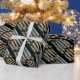 Los tubos de órgano plateados repetidos en un modelo de la teja hacen un papel de embalaje único, especialmente para un músico de la iglesia.