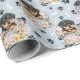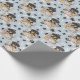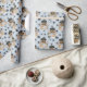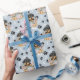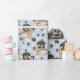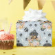 Un adorable cachorro rottweiler colocado en una cesta de mimbre decorada con flores es la característica del patrón en este papel de envoltura de regalo de ocasión. El retrato es en medio de un patrón de huellas de pata negra y huesos blancos, y se repite en un fondo azul plateado. ¡Perfecto para cualquier amante del perro Rottweiler!