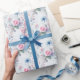 "Celebra la alegría de Pascua con este encantador papel de envoltura con un delicado diseño floral de acuarela en suaves tonos pastel de rosa, azul y violeta. Las elegantes flores y la exuberante vegetación crean una estética de primavera soñadora, con un fondo blanco resplandeciente que le da un toque luminoso y amplio. Perfecto para envolver regalos de Pascua, celebraciones de primavera o decoración de temporada, este diseño le da un toque de elegancia y encanto a cualquier ocasión".