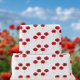 Un papel de envoltura de amapola de bonito solo para ti. El diseño presenta adornos rojos en un fondo blanco.