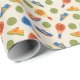 Este patrón es un patrón sin fisuras de temática deportiva con equipo de padel. El diseño incluye zapatillas de padel coloridas, zapatos deportivos y pelotas de tenis esparcidas por un fondo beige claro.