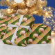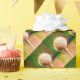 Una pelota blanca de golf sobre un tejo blanco frente a un fondo verde.