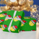 Pelota de tenis con el papel de embalaje del gorra de Santa para Navidad. Diseño deportivo del papel de regalo del navidad. El saludo de la estación adaptable.