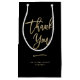 Esta moderna y elegante bolsa de compras negra incluye las palabras "gracias" en la moderna y falsa tipografía de escritura manuscrita de estilo dorado. Añada el nombre de su empresa o de su empresa, su sitio web u otra información para un bolso que sus clientes corporativos querrán mostrar.