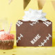 El papel de envoltorio para regalos personalizado hará cada ocasión un poco más especial y memorable. Los chocarán para verle encontrar el papel de embalaje del fútbol con su nombre y número (o monograma) en él. La falsos textura del fútbol y fútbol muy frescos ata para arriba cerca.