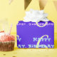 Este personalizable y divertido diseño de papel de envoltura de cumpleaños incluye un mensaje como "¡Feliz cumpleaños, nombre!", donde el nombre puede ser personalizado. El número de cumpleaños también se puede personalizar. El envolvimiento de papel como este podría ser usado para envolver regalos que se dan para celebrar el cumpleaños de alguien. [~Z0000247]