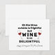 Muestra diversión y humor durante las fiestas con esta Tarjeta de Navidad Personalizada con Chistes de Vino. Es un diseño de tipografía con letras negras en negrita y dos copas de vino pequeñas a cada lado del texto. El chiste divertido es "el virus exterior es espantoso, pero el vino es tan delicioso". Personalizado con tu mensaje de felicitación navideña y el nombre de tu familia.