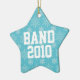 El ornamento asteroide del árbol de la música del navidad tiene un fondo del azul con los copos de nieve blancos, y cita de la BANDA en frente. Cambie el año a la fecha de este año; en la parte posterior, añada un nombre personalizado usando la plantilla del diseño. Grandes regalos de la música del día de fiesta para cada miembro de su grupo de banda de la banda, de la banda de jazz o de la etapa.