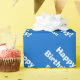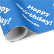 Personalizado Feliz cumpleaños papel de envoltura | añadir nombre. Una idea de nombre personalizable para las celebraciones de Bday fiesta. Colores de fondo de personalizable y nota de texto. Sorprende a tu familia. Haz giftwrap personalizado para mamá, papá, tío, tía, hermano, hermana y otros miembros de la familia. Rollos personalizados de envoltura de regalo. Color azul.