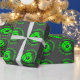 Personalizado paintball Fiesta de cumpleaños envolvimiento rollos de papel. Diseño de patrones divertidos con cruces y manchas de pintura verde neón. Color del fondo del personalizable. Brecha divertida para niños y adultos. Personalice con nombre y saludo personalizados. Disponible en acabado mate y brillante.