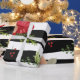 Regalo Poinsettias, papel de embalaje rayado negro