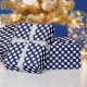 Regalo Punto de polka blanco sobre papel de envolver azul
