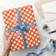 Papel de envoltura construido con un patrón de punto de polka blanco sobre un fondo naranja brillante. Personalizar el fondo del naranja de una manera fácil.