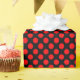Papel de envoltura construido con un patrón de punto polka rojo sobre un fondo negro. Personalizar el fondo negro de una manera fácil.