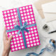 Papel de envoltura diseñado con un patrón de punto blanco sobre fondo rosado caliente. Personalizar el fondo rosado caliente entre otras opciones.