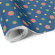 Un rollo de Giftwrap de moda, con un patrón de extravagantes puntos Jumbo Polka en rojo, verde y amarillo, sobre un fondo azul marino que se puede cambiar si se desea. Parte de la colección "Rangoli" de Posh & Painterly, este patrón se puede ajustar para que se ajuste a cualquier rollo de papel de envoltura.