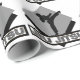 Envuelva los regalos del navidad de Ju Jitsu o los presentes de cumpleaños con este papel de envoltorio para regalos de los artes marciales que ofrece una figura masculina del hombre del arte marcial en un diamante gris sobre la frase Ju Jitsu.