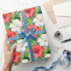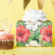 Prepárese para una atmósfera tropical con hojas de hibisco pintadas con acuarela y flores en tonos rojos, blancos y verdes. Los frondosos verdes, las vibrantes flores rojas y los crujientes pétalos blancos crean un estilo festivo y juguetón. ¡Es como unas vacaciones de vacaciones en un diseño!