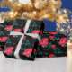Regalo Roses rojos florecen en papel de envolvimiento neg