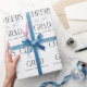 Celebra a los graduados con papel de envoltura personalizado con un diseño blanco y negro en tipografía moderna y elegante. Destacado con la frase "Salud al Grado", incluye texto personalizado para mostrar el nombre del graduado y el año de clase, agregando un toque sofisticado a cualquier regalo o celebración. © Kimbellished, LLC