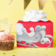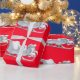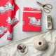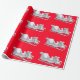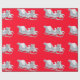 Regalo Sleigh blanco sobre papel de envolvimiento rojo