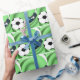 ¡En el campo de fútbol con la pelota de fútbol y un jugador listo para la ganadora! A los aficionados al deporte les encantará ver sus regalos envueltos en este diseño fresco.