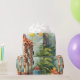 Sonriente jirafa personalizado en la selva con globos. Gran diseño para envolver regalos para niños de cualquier edad.