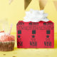 Papel de embalaje de vacaciones con texto negro que dice ¡Te deseamos una Feliz Navidad en forma de árbol de Navidad! Puede personalizar el fondo rojo para que sea cualquier color que desee.