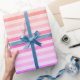 Combinación de rayas moradas, rosas, naranjas y amarillas con tonos de color complementarios. Hermoso papel de envoltura de regalo de arcoiris para todas las ocasiones.