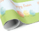 Papel de embalaje con tres, sonriendo, caracteres del huevo de Pascua. Las palabras "Pascua feliz" son adaptables.