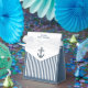 Navegue para una celebración con nuestra encantadora bolsa de favores de temática náutica. Con sus clásicas franjas azul marino y blanco, combinadas con suaves pasteles y su nombre y ancla personalizados, crea un ambiente costero acogedor. Esta bolsa de personalizado con favores para la ducha de bebé encantará a sus huéspedes y marcará el tono perfecto para la ducha de bebé de su hijo. Acomódelo con regalos fiestas y cree una escapada de mesa con un tema de ducha de bebé de rayas azules y blancas.