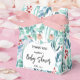 Caja de Favor para la ducha de bebé, decorada con adorables imágenes de plantas acuáticas con suaves hojas de esmeralda y azul pastel, ramas y flores de color rosa suave.