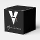 El diseño de la Caja de Favor Personalizable para Padrino presenta el aspecto de un esmoquin como diseño principal. La palabra "Padrino" se puede cambiar para leer Mejor Hombre, ujier o algo diferente. Ordene junto con el diseño coordinado de "Novia", sustituya la redacción con los nombres de la pareja, y tendrá los favores perfectos para la boda o la ducha.