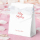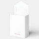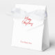 Sencillo y elegante caja de favores del partido Navidades. Feliz Navidad en texto de escritura moderno en plegado frontal y campo de texto tradicional simple en la parte inferior y posterior para tu nombre o nota personalizada. Texto rojo sobre fondo blanco.