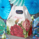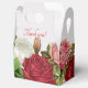 Caja de regalo de fiesta de rosas antiguas para el cumpleaños de una mujer, aniversario o boda. Hermosas rosas rojas, rosadas y blancas cubren los lados de esta caja de regalo con asa. Incluye texto "gracias" en la parte delantera en rojo, o cambiarlo. Otros tipos de cajas funcionarán, pero el texto deberá eliminarse. El color de fondo es gris muy pálido.