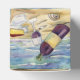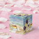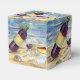 Una botella de vino tinto se inclina contra una copa de vino en la playa. Una bandeja de queso está lista para ser cortada, así como un segundo vino está listo para ser rellenado. En la playa de arena se entremezclan las tumbonas. Las suaves olas del océano de colores pastel alegran el fondo. Pintura representada en acuarela. Haz una fiesta especial de fiesta de playa de vino tinto favorece las cajas de regalo con tus propios textos e imágenes usando la opción "Personalizar It" para vacaciones personalizadas y ocasiones especiales de la vida del vino regalos de arte relacionados con el vino!