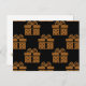 Una tarjeta postal de Navidad contemporánea en negro y dorado, que presenta un patrón dorado de cajas de regalos de Navidad con lazos dorados encima.