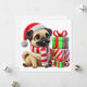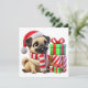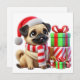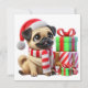 Celebra la temporada con este encantador Pug rodeado de regalos coloridos, luciendo un sombrero y una bufanda festivos de Santa. Una tarjeta encantadora para difundir la alegría navideña a todos