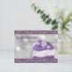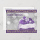 Elegante postal de Navidades morados y dorados con una bolsa llena de regalos navideños dentro de un marco adornado con bayas y hebillas.