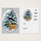 Exquisito arte navideño con un adorable territorio norfolk parado frente a un árbol de Navidad lleno de nieve, decorado con adornos que parecen brillar a la luz de la luna. Maravillosos regalos para los amantes del norfolk terrier.